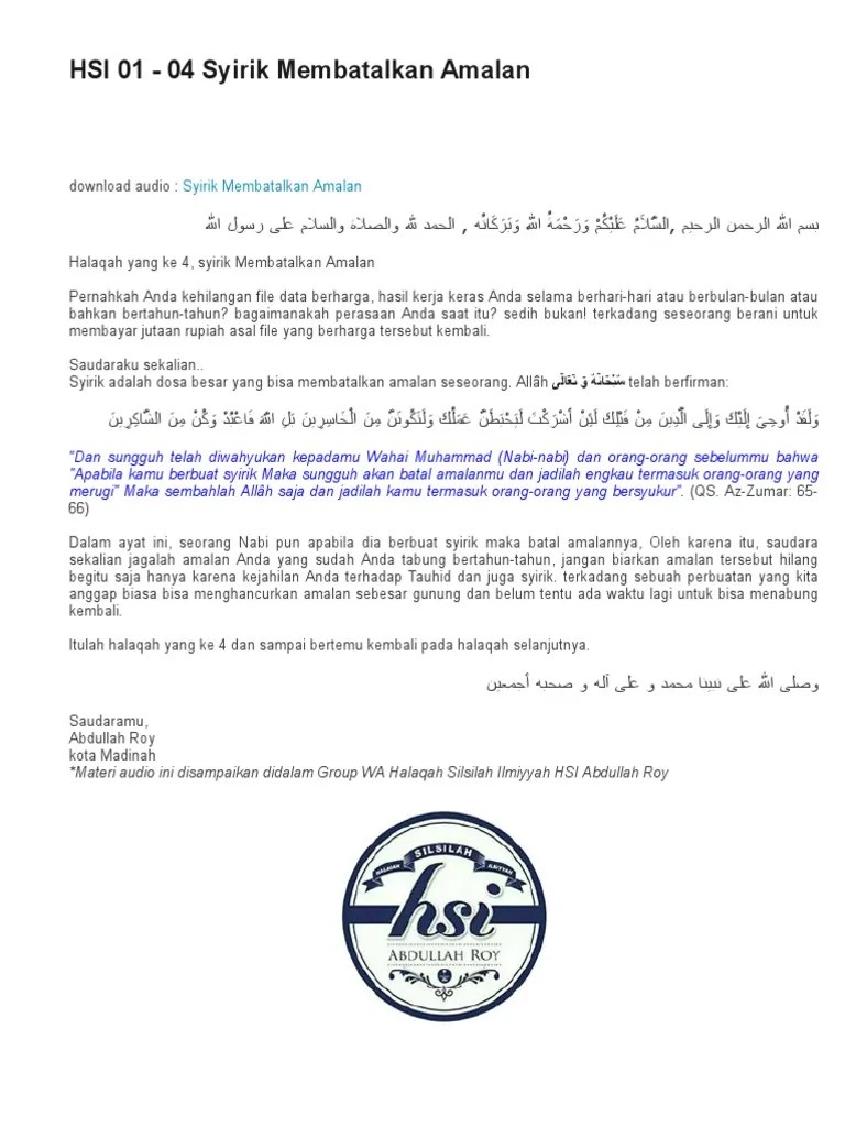 Materi Hsi Termasuk Syirik Memakai Jimat - 2 - Fan page dari materi group whatsapp hsi abdullahroy yang diasuh oleh ust dr.